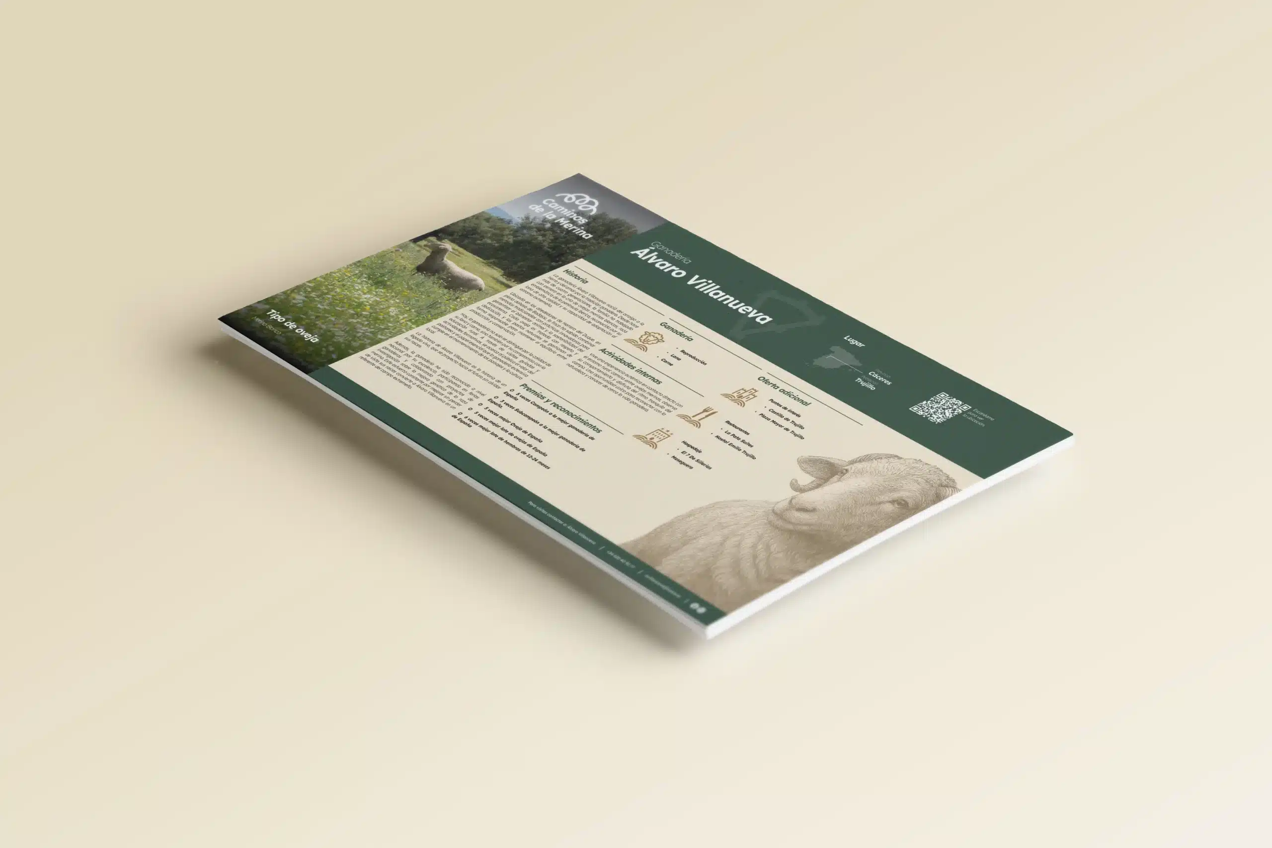Diseño de fichas informativas para el proyecto “Caminos de la Merina”, una iniciativa que promueve el turismo rural a través de rutas vinculadas a la oveja merina.